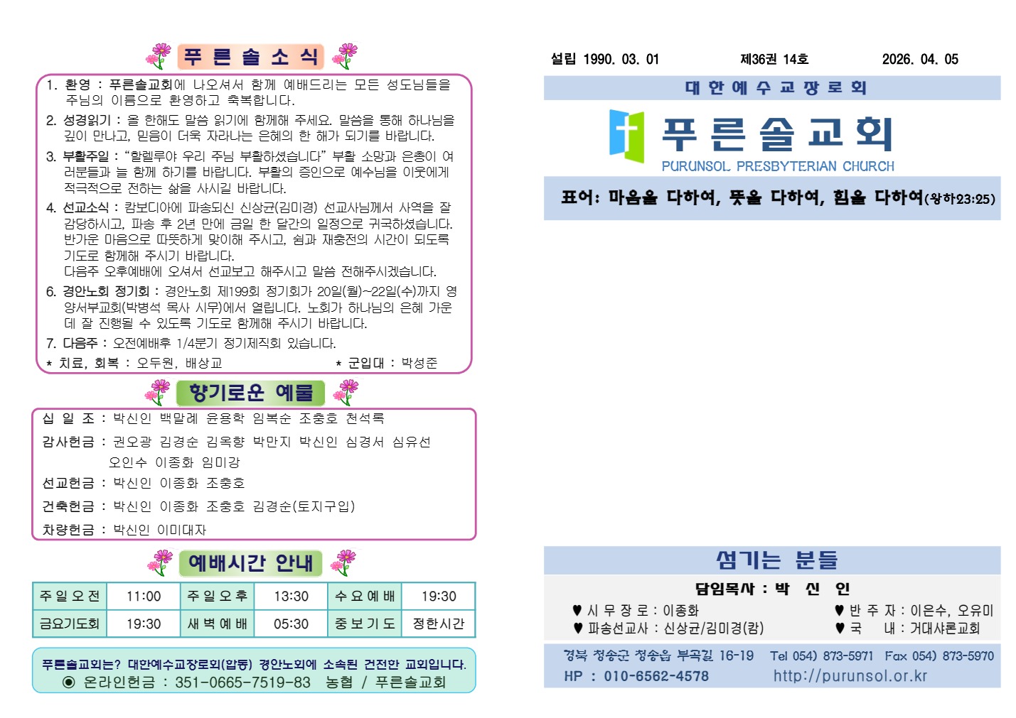 2026³â 04¿ù 05ÀÏ Çª¸¥¼Ö±³È¸ ÁÖº¸